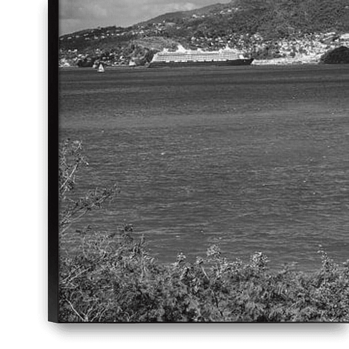 Bestelle dieses Landschafts-Wandbild Insel Grenada in der Karibik in schwarzweiss. von Manfred Voss, Schwarz-weiss Fotografie als Reproduktion auf Leinwand, Alu-Dibond, als Poster, Fototapete oder Acrylglasbild.