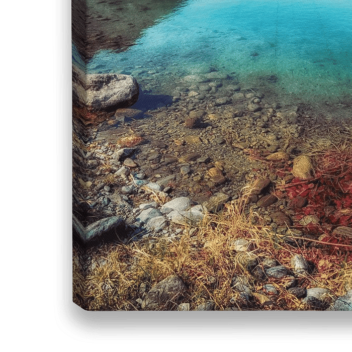 Kleiner Weiher im Tessin in der Schweiz. Das Türkisblau des Himmels spiegelt sich im Wasser und ergibt zusammen mit den warmen Farbtönen der Vegetation ein tolles Farbenspiel.