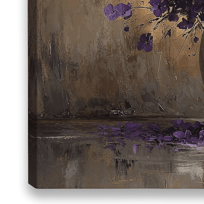 Purple Flowers Painting | Lavender Luxe Eclipse - Modernes Stillleben mit violetten Blumen und goldener Vase