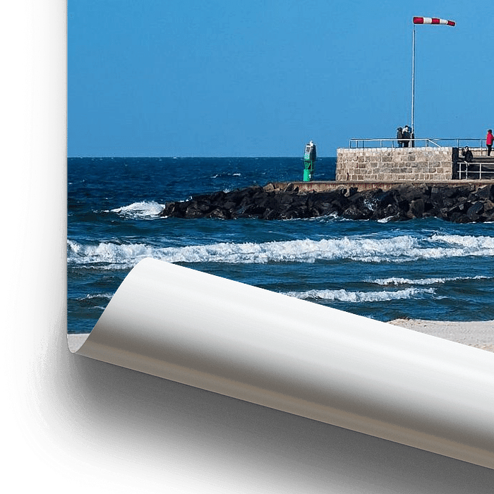 Bestelle dieses moderne Wandbild Mole an der Ostseeküste in Warnemünde von Rico Ködder als Reproduktion auf Leinwand, Alu-Dibond, als Poster, Fototapete oder Acrylglasbild.