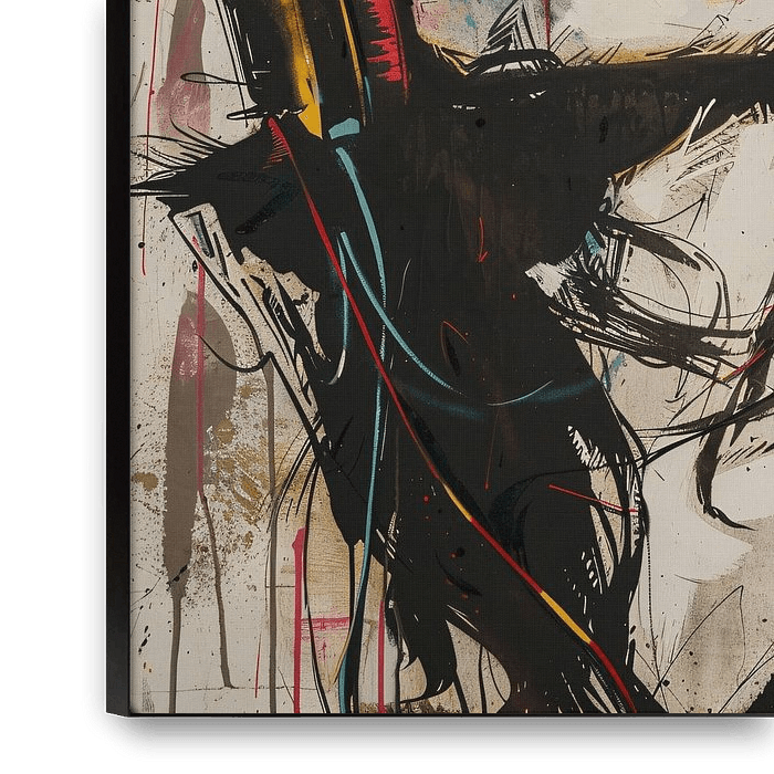 Dieses einzigartige Kunstwerk fängt die Essenz des modernen Ausdrucks mit einer Kombination aus leuchtenden Farben und dynamischen Linien ein. Das Porträt einer Person mit geschlossenen Augen, die ganz in die Musik aus den Kopfhörern vertieft ist, vermittelt ein Gefühl von Ruhe und Hingabe. Die leuchtenden Farben und die abstrakten…