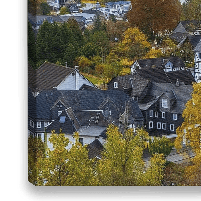 Bestelle das Foto Panorama des historischen Freudenbergs im Herbst von Henk Meijer Photography als Reproduktion auf Leinwand, Alu-Dibond, als Poster, Fototapete oder Acrylglasbild.