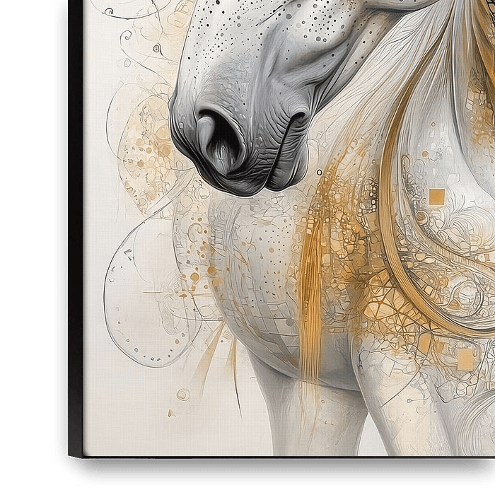 Bestelle dieses abstrakte Wandbild Pferd von Gelissen Artworks als Reproduktion auf Leinwand, Alu-Dibond, als Poster, Fototapete oder Acrylglasbild.