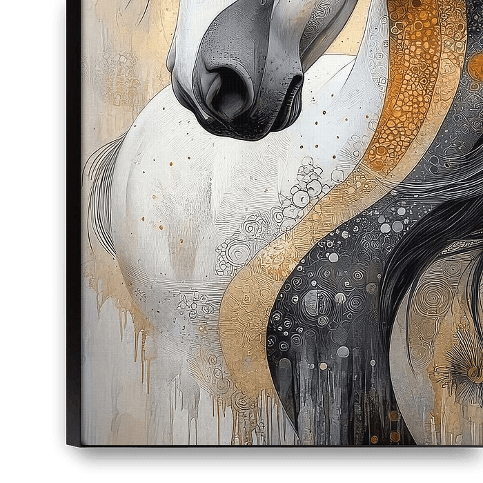 Bestelle dieses abstrakte Wandbild Pferd von Gelissen Artworks als Reproduktion auf Leinwand, Alu-Dibond, als Poster, Fototapete oder Acrylglasbild.