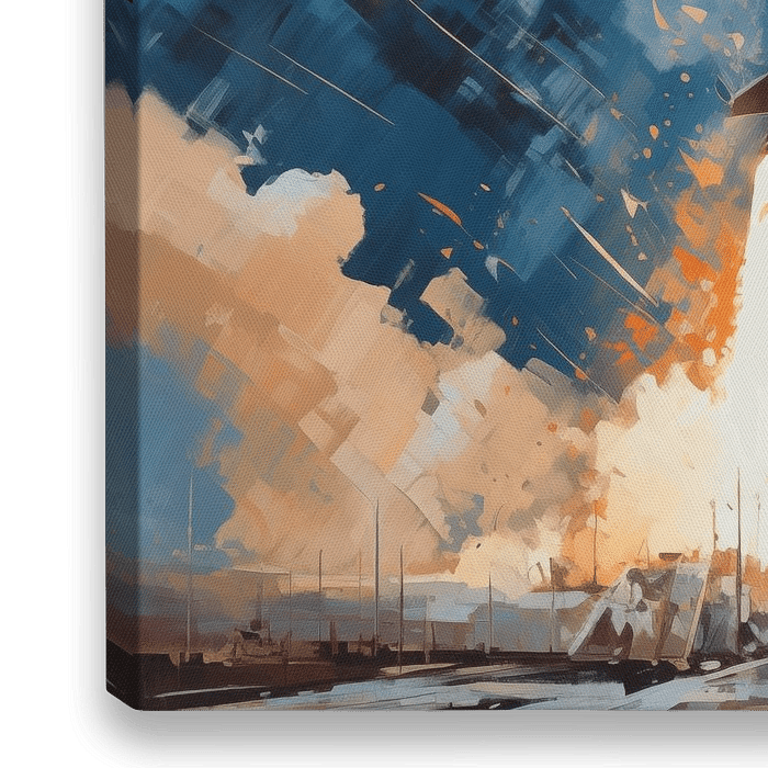 Einzigartiges abstraktes Gemälde eines Raketenstarts mit atemberaubendem Stil. Mit schönen Farbtönen und einem einzigartigen Design ist dies ein stilvoller Fotodruck, der in jedem Raum gut aussieht.