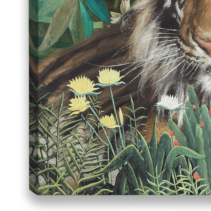 Liegender Tiger in einer Rousseau-Landschaft