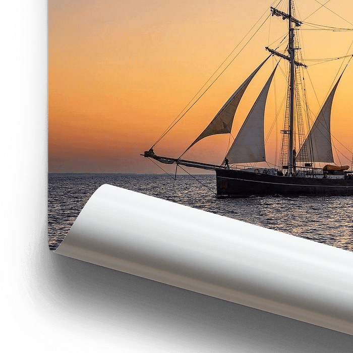Bestelle das Foto Segelschiff im Sonnenuntergang auf der Hanse Sail in Rostock von Rico Ködder als Reproduktion auf Leinwand, Alu-Dibond, als Poster, Fototapete oder Acrylglasbild.