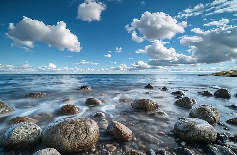Bestelle dieses Landschafts-Wandbild Spaziergang am Strand von fernlichtsicht als Reproduktion auf Leinwand, Alu-Dibond, als Poster, Fototapete oder Acrylglasbild.