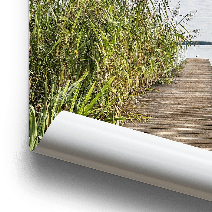 Bestelle dieses Landschafts-Wandbild Steg und Schilf am Krakower See in der Stadt Krakau am See von Rico Ködder als Reproduktion auf Leinwand, Alu-Dibond, als Poster, Fototapete oder Acrylglasbild.