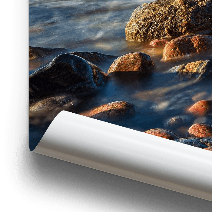 Bestelle dieses Landschafts-Wandbild Steine an der Ostseeküste bei Warnemünde an einem stürmischen von Rico Ködder als Reproduktion auf Leinwand, Alu-Dibond, als Poster, Fototapete oder Acrylglasbild.