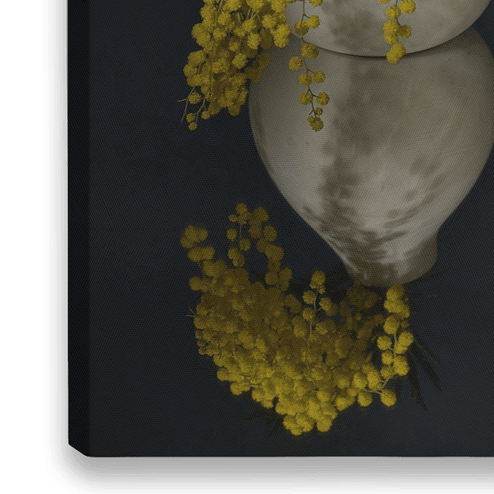 Bestelle das Foto Stillleben mit Mimose und Reflexion . von Saskia Dingemans Awarded Photographer als Reproduktion auf Leinwand, Alu-Dibond, als Poster, Fototapete oder Acrylglasbild.