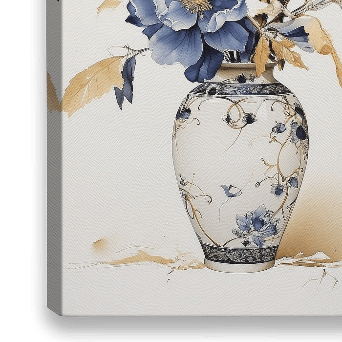 Bestelle dieses Blumen-Wandbild Trockenblumen in einer Kintsugi-Vase von Gelissen Artworks als Reproduktion auf Leinwand, Alu-Dibond, als Poster, Fototapete oder Acrylglasbild.