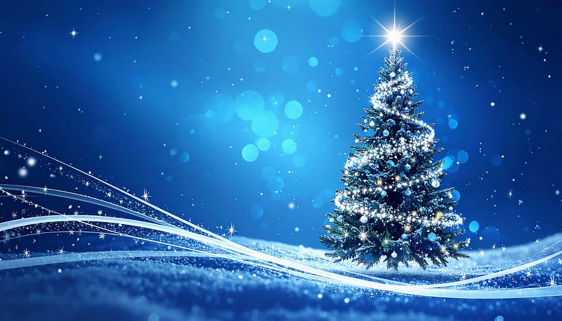 Weihnachtsbaum vor blauem Hintergrund und Schnee