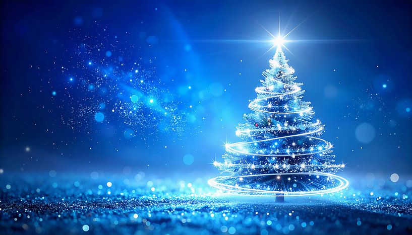 Weihnachtsbaum vor blauem Hintergrund und Schnee