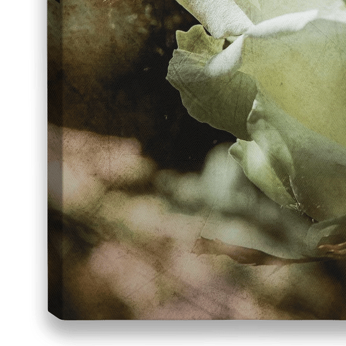 Weisse Rosenblüten im strahlenden Sonnenschein. Warme Brauntöne als Hintergrund mit Textur hinterlegt.