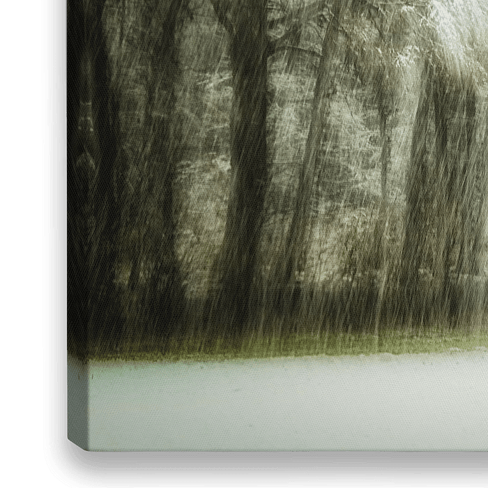 Winterlicher Waldrand bei Schneefall. Durch die spezielle Aufnahmetechnik mit der Kamera erhält dieses Bild sein abstraktes Aussehen.