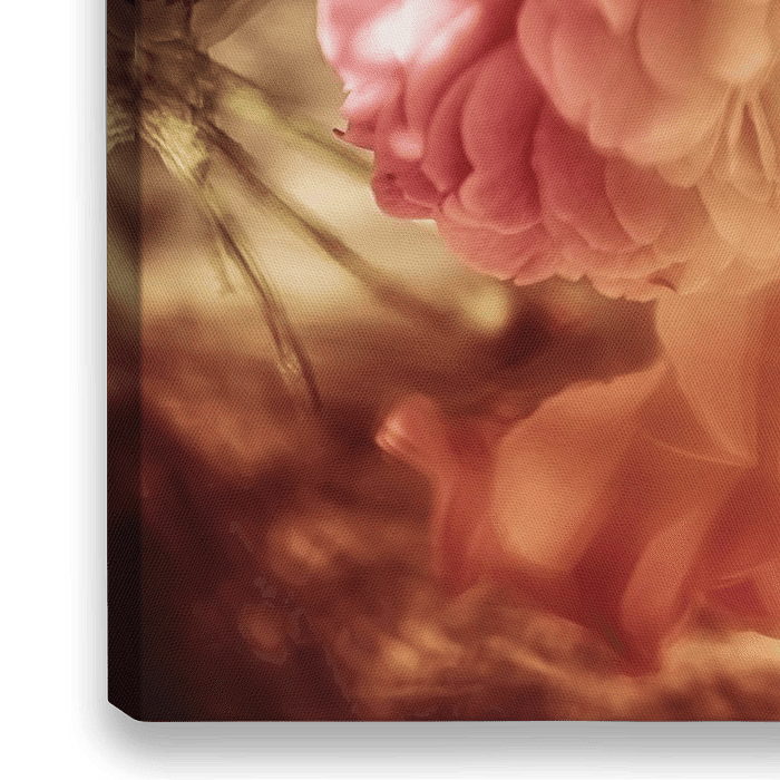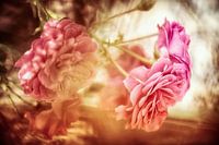 Romantische Fotografie von zarten rosafarbenen Rosenblüten im sanften Sonnenlicht.