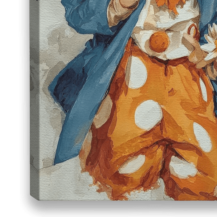 Bestelle das digitale Kunst Bild fröhlicher Clown in Aquarell von Gelissen Artworks als Reproduktion auf Leinwand, Alu-Dibond, als Poster, Fototapete oder Acrylglasbild.