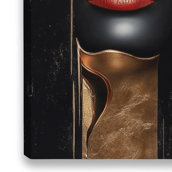 Entdecken Sie unsere exklusive Kollektion von Frauenbildern in Gold, Schwarz und Rot, die mit künstlicher Intelligenz geschaffen wurden.