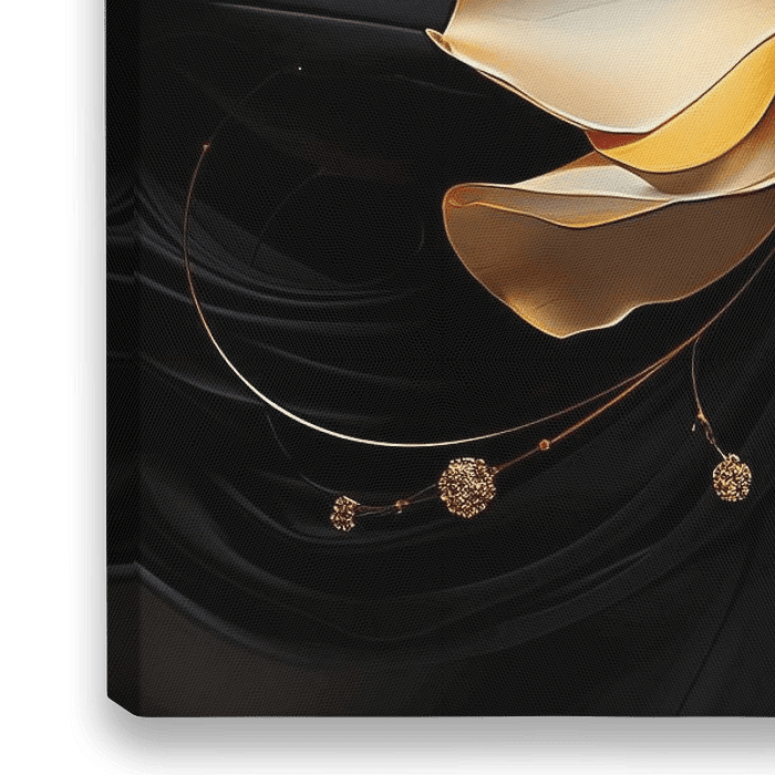 Bestelle dieses abstrakte Wandbild schwarz-gold-silber von Gelissen Artworks als Reproduktion auf Leinwand, Alu-Dibond, als Poster, Fototapete oder Acrylglasbild.