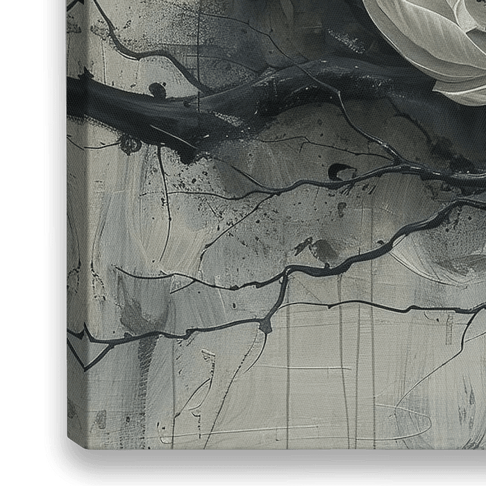 Bestelle dieses Blumen-Wandbild weiß-grau mit Farbelement von Gelissen Artworks als Reproduktion auf Leinwand, Alu-Dibond, als Poster, Fototapete oder Acrylglasbild.