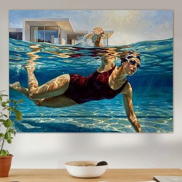 Die Kollektion „Swimmers“ fängt die fließende Eleganz menschlicher Bewegungen im Wasser ein. Jedes Stück spiegelt ruhige Momente wider, von anmutigen Sprüngen bis hin zu friedlichen Unterwasserszenen, und verbindet moderne Kunst mit natürlicher Schönheit. Das Zusammenspiel von Licht, Bewegung und lebhaften Farbtönen ruft ein Gefühl der Ruhe und des Staunens hervor und zelebriert die Harmonie zwischen Mensch und Wasserwelt.