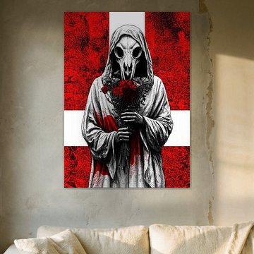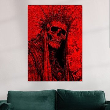 Trauernder Mann Silhouette gegen texturierten roten Mond Kunst von BINEDITS