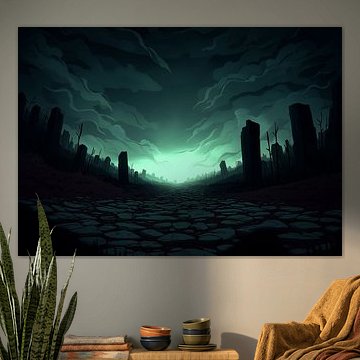 Dunkle Fantasy-Wüste mit unheimlichem grünen Horizont von BINEDITS