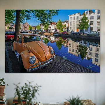 Rapenburg in Leiden mit orangefarbenem Käfer von Dirk van Egmond