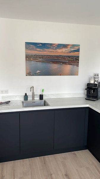 Blaue und graue Stadtansichten harmonieren gut mit warmen Holztönen und erdigen Textilien wie Terrakotta oder Bronze. Die kühlen Blau- und Orangetöne in Panorama: Blick auf Amsterdam passen zum Beispiel wunderbar zu einem hellen Holzregal oder beigefarbenen Sofakissen - so entsteht ein ausgewogenes Raumgefühl.