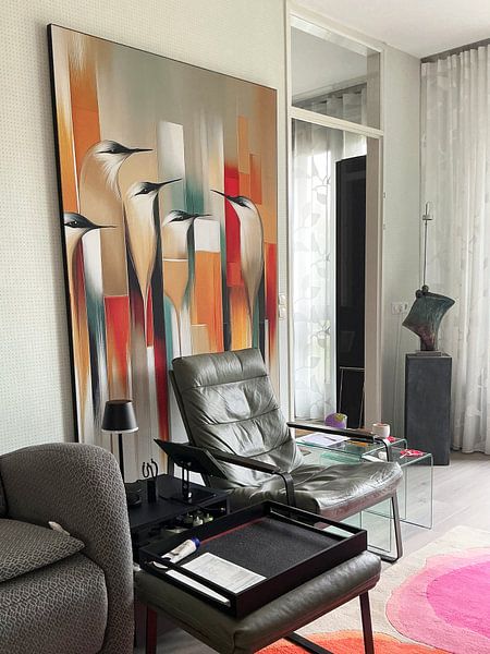 Hochformatige Arbeiten dominieren in der Beige-Kollektion und eignen sich perfekt für schmale Wandflächen. Du kannst ein Hochformat gut neben einem Bücherregal oder zwischen zwei Fenstern platzieren. Auch neben dem Bett oder an einer Garderobenwand kommt dieses Format schön zur Geltung. Wenn du eine breitere Wand gestalten möchtest, funktioniert auch ein querformatiges Werk - etwa über einem Sideboard oder einer Kommode. Wähle das Format passend zu deiner Wandfläche und den Möbeln darunter.