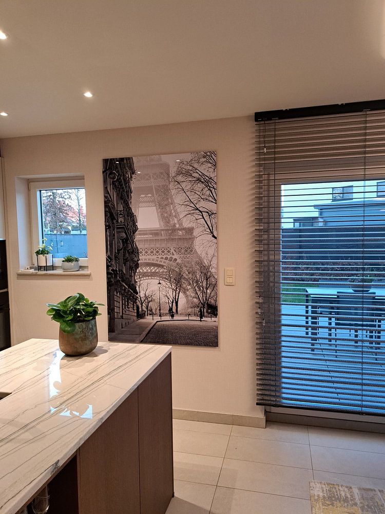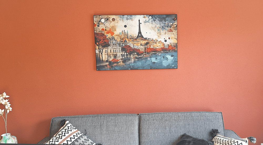 Das Wohnzimmer ist ein guter Ort für die Kollektion Eiffelturm. Die ruhige und romantische Ausstrahlung der Motive passt ideal zu entspannten Abenden auf dem Sofa. Kombiniere die Kunstwerke mit warmen Braun- und Taupe-Tönen in deinen Textilien - das unterstreicht die nostalgische Stimmung. Ein großes Bild über dem Sideboard wird zum natürlichen Blickfang, während mehrere kleinere Formate eine persönliche Galerie-Wand ergeben. Die Mischung aus Fotografie, digitaler Kunst und Malerei sorgt für Abwechslung an der Wand.