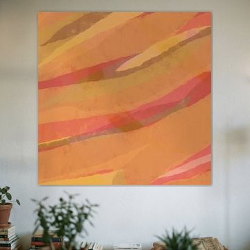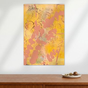 Moderne abstrakte Kunst. Pinselstriche in Gelb, Braun, Rosa. von Dina Dankers