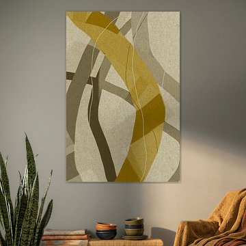 Moderne abstrakte Kunst. Pinselstriche in Gelb, warmem Braun und Beige von Dina Dankers