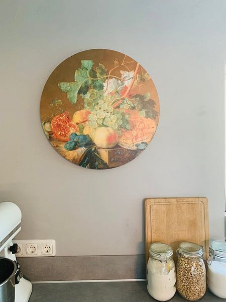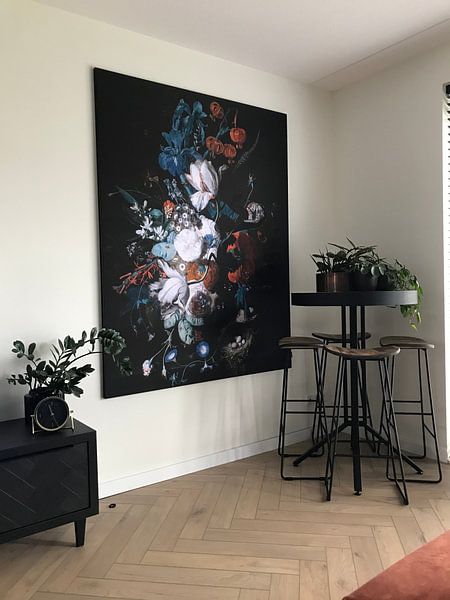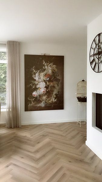 Werke mit feinen Details und prächtigen Kompositionen verdienen einen Platz auf Augenhöhe, wo du sie in Ruhe betrachten kannst. Achte darauf, dass genug Wandfläche um das Bild bleibt - so wirkt die Darstellung nicht überladen. Bei Stillleben mit Blumen und Frucht, Jan van Huysum mit seinem üppigen Arrangement empfehlen wir mindestens 20 cm Abstand zu Möbeln oder anderen Wandelementen.