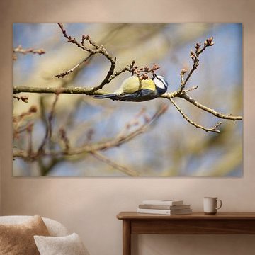 • Kundenfoto: Kohlmeisen auf Blütenzweig von Ohara Koson, auf Leinwand