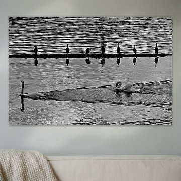 Das Wohnzimmer bietet sich gut an, um die Kollektion Schwäne in Szene zu setzen - besonders über dem Sofa oder an einer freien Wand neben dem Sideboard. Die ruhige Ausstrahlung der Motive passt gut zu Räumen, in denen du entspannen und abschalten möchtest. Wähle ein großformatiges Querformat über der Couch oder kombiniere mehrere kleinere Hochformate zu einer lockeren Wandkomposition. Fototapete eignet sich hervorragend für großflächige Fotomotive, da Details gestochen scharf bleiben und die Präsenz der Schwäne besonders intensiv wird.