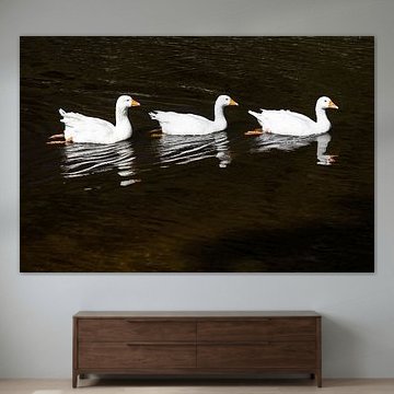 Drei junge Gänse auf dem Wasser von Frank Herrmann