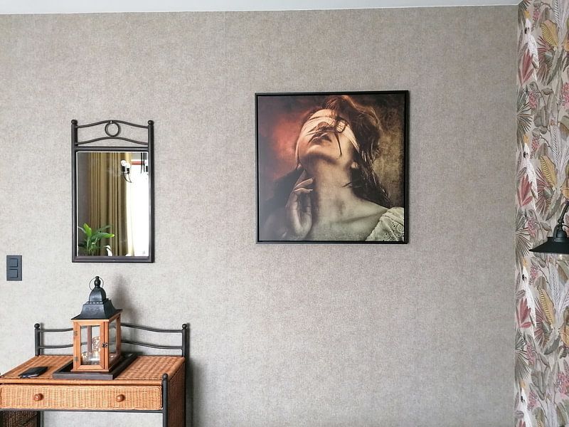 Träumerische Motive mit geschlossenen Augen und sanften Farben passen gut ins Schlafzimmer. Sie schaffen eine ruhige Stimmung, die beim Entspannen hilft. Das Werk Jungfrau - Hüterin der heiligen Ordnung mit seinen Teal- und Grüntönen bringt eine meditative Ruhe an die Wand - ideal über dem Bett oder an einer freien Seitenwand.