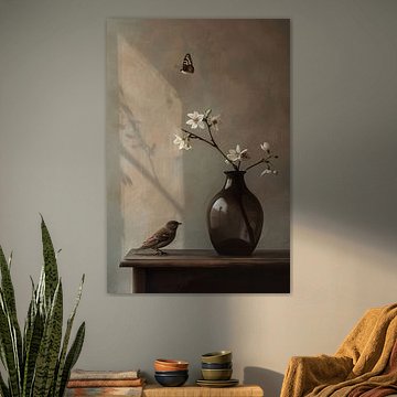Stilleben mit Vogel und weißer Blüte von Art & Soul Creations