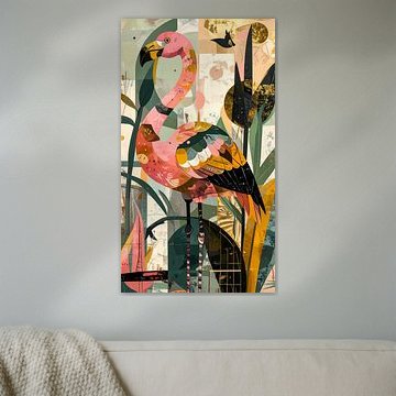 Abstraktes Flamingo-Gemälde - Stilvolles Statement für Innenarchitekten von Emiel de Lange