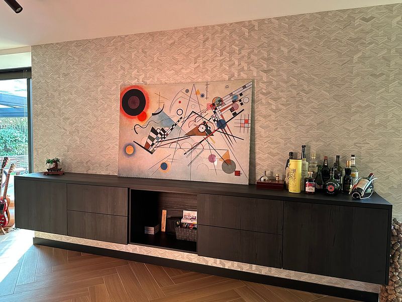 Klare Formen und präzise Linien schaffen eine konzentrierte Atmosphäre ohne Ablenkung. Arbeitsbereiche und Homeoffices vertragen Kunst, die Struktur vermittelt und trotzdem visuell interessant bleibt. Ein passendes Beispiel ist Komposition VIII, Wassily Kandinsky, dessen geometrische Elemente Ordnung mit spielerischer Leichtigkeit verbinden.