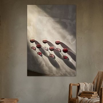 • Kundenfoto: Rotwein im Strom des Genusses: Ein Weinglas zwischen flüssigem Gold, rubinroten Spritzern und der Würde des Augenblicks von AidasignArt, auf Alu-Dibond
