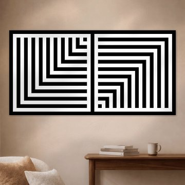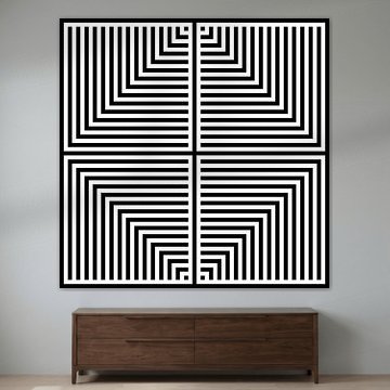 Ursprünglich in vier Quadranten bilden mehrere Streifen jeweils ein L oder einen Winkel.