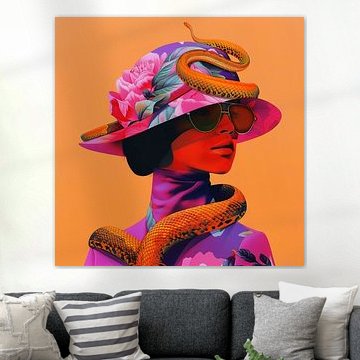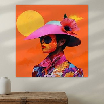 artwork oranje paars portret illustratie durf bloem gelaat moderne kunst modern vierkant
