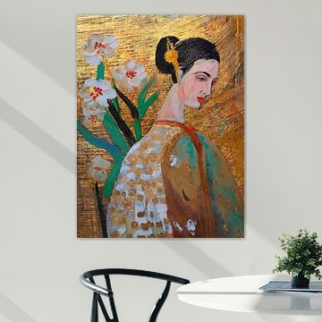 In dit album vind je moderne illustratie portretten van meisjes en vrouwen. Vaak een beetje bijzonder - in elk geval niet alledaags - maar altijd warm van sfeer door het gebruik van goud accenten en texturen en patronen. Het geeft jouw woonkamer, slaapkamer, werkkamer enz. net dat extra artistieke sfeertje.