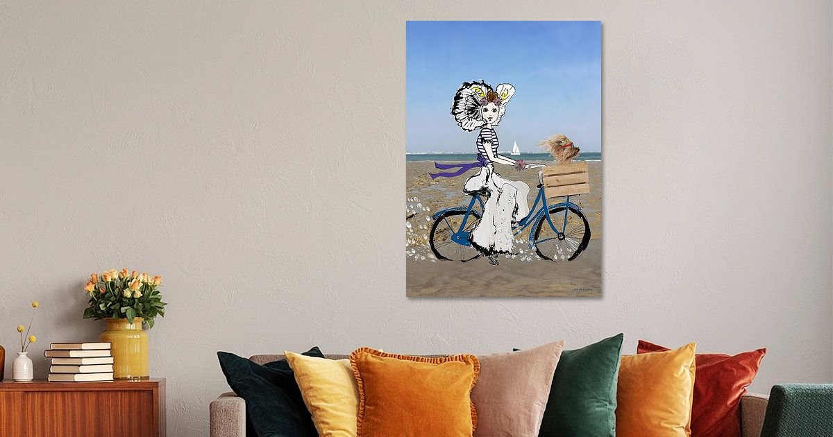 Je préfère dessiner les filles de Zélande, les plages, la mer et les voitures anciennes, mais je suis à l'aise dans bien d'autres domaines. À la maison, par exemple, j'ai un vrai dinofan qui voulait un poster de dinosaures dans sa chambre. J'ai donc dessiné celui-ci pour lui. Ma fille est fan de licornes arc-en-ciel et j'ai également dessiné pour elle une licorne unique avec, bien sûr, un arc-en-ciel en arrière-plan. Ces œuvres sont désormais accessibles à tous sur le site Werk aan de muur.