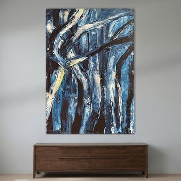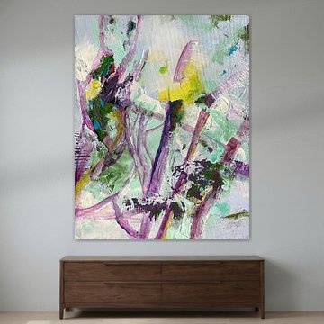 Je combine différents matériaux, je peins à l'acrylique, à l'huile et à la craie, et j'ajoute souvent de nouveaux accents avec des éléments de collage. Je pose des accents colorés clairs, je peins souvent avec des couleurs très vives.