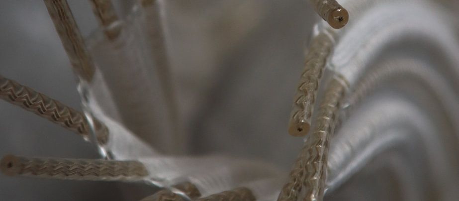 Lorsque le tissu sort du métier à tisser, une sculpture inhabituelle est créée.