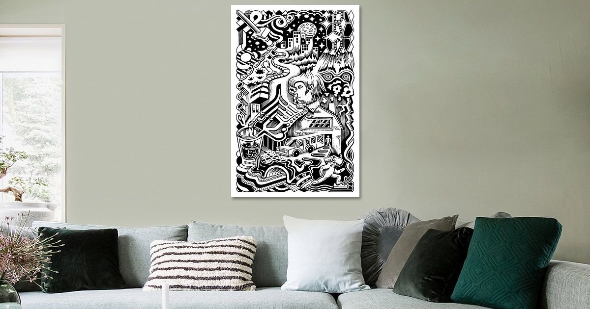 Je m'appelle Simon van Kessel. Ma passion est le dessin / l'illustration. Mes illustrations sont des dessins imaginatifs, détaillés, le plus souvent post-traités numériquement au fineliner et comprennent une variété de sujets (architecture, affiches de quiff / compilations de visages, gribouillis fantastiques). Les " gribouillis fantaisistes " créent une sorte de " mondes de rêve ", dans lesquels des éléments figuratifs / concrets et abstraits se mélangent à la manière d'Escher. Instagram : @simonillustrator www.simonvankessel.nl